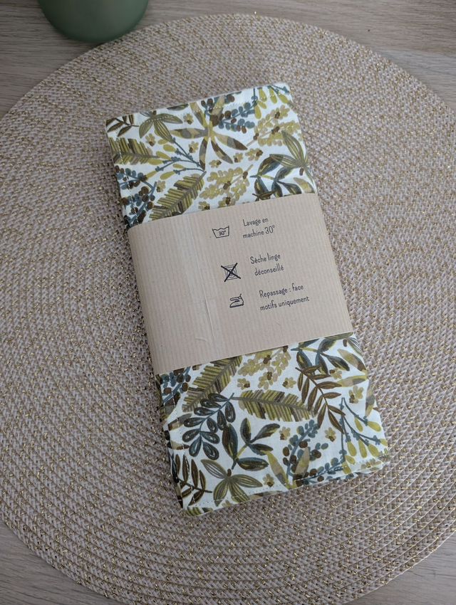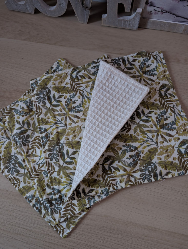 Lot de 4 feuilles d'essuie tout lavables. Très pratiques, elles peuvent aussi servir de serviette de table !