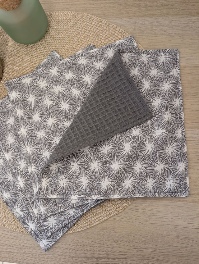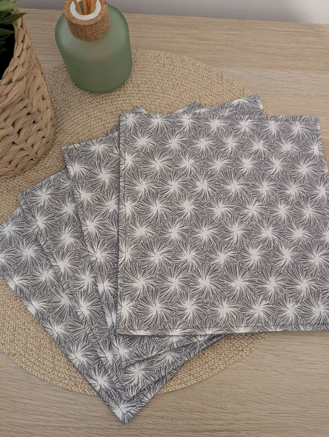 Lot de 4 feuilles d'essuie tout lavables. Très pratiques, elles peuvent aussi servir de serviette de table !