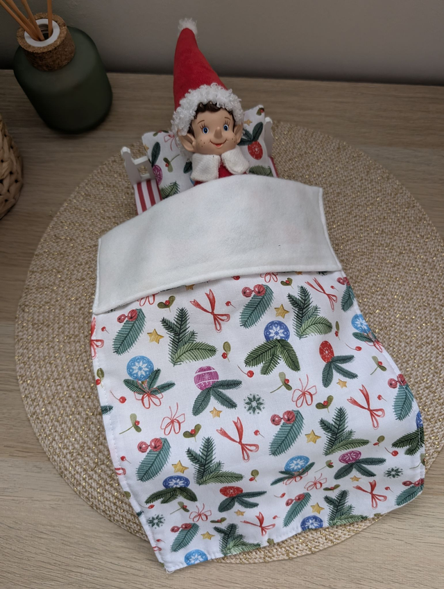 Jolie parure de lit pour réchauffer votre petit lutin après les bêtises de la nuit :) Couverture + oreiller pour lutin farceur.
