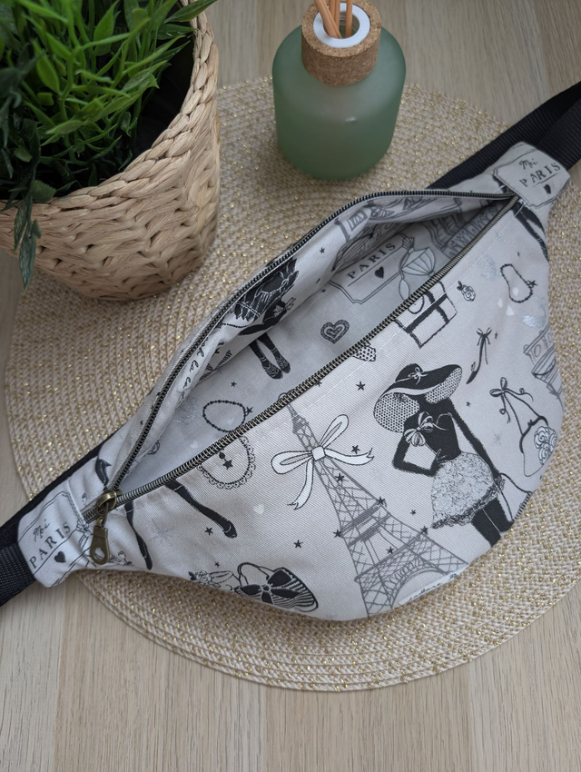 Sangle noir de 2.5 cm, réglable à votre taille. Dimensions environ 40 x 18 cm.