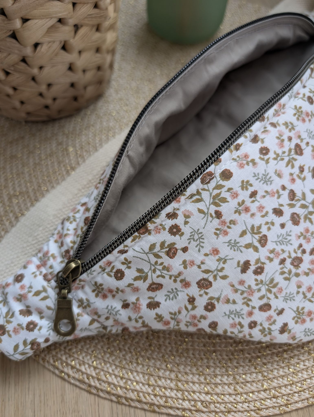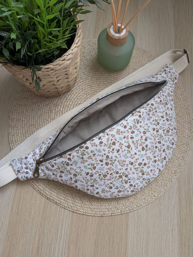 🌸 Extérieur en tissu fleuri, intérieur en coton uni.