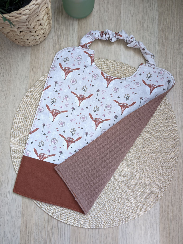 Cette grande serviette de cantine enfant est idéale à la maternelle, la cantine, chez nounou, ou à la maison ! Le tour de cour est élastique, donc l'enfant peut la mettre et la retirer seul en toute autonomie. Fini les tâches sur les vêtements.